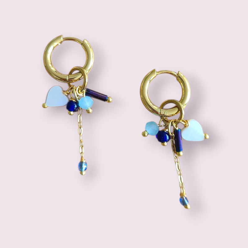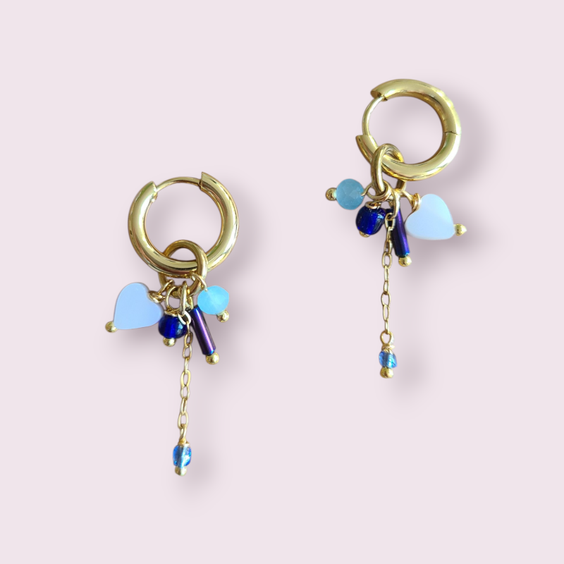 Roestvrijstalen goudkleurige oorbellen met blauwe kralen hanger