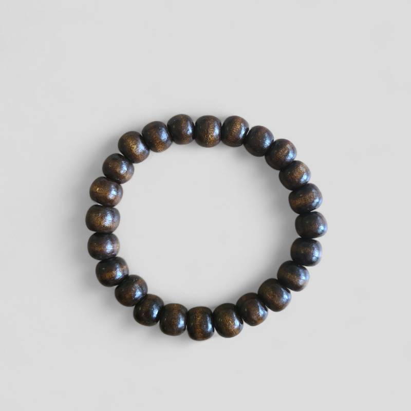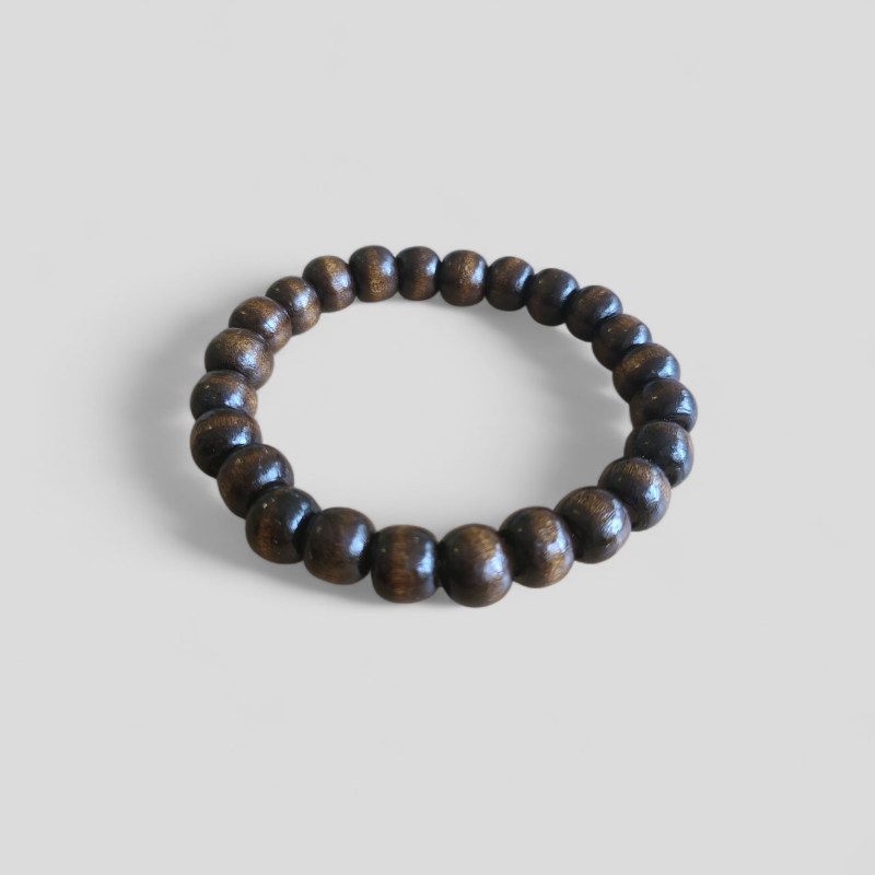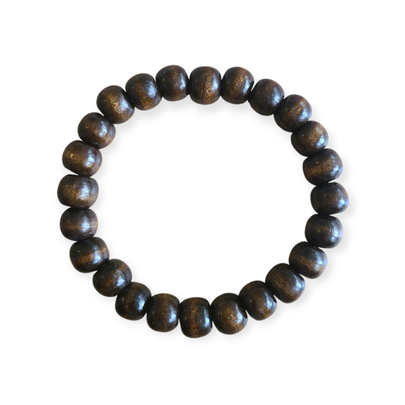 Armband gemaakt van houtkralen aan een elastische band. Brede 8 mm kralen.